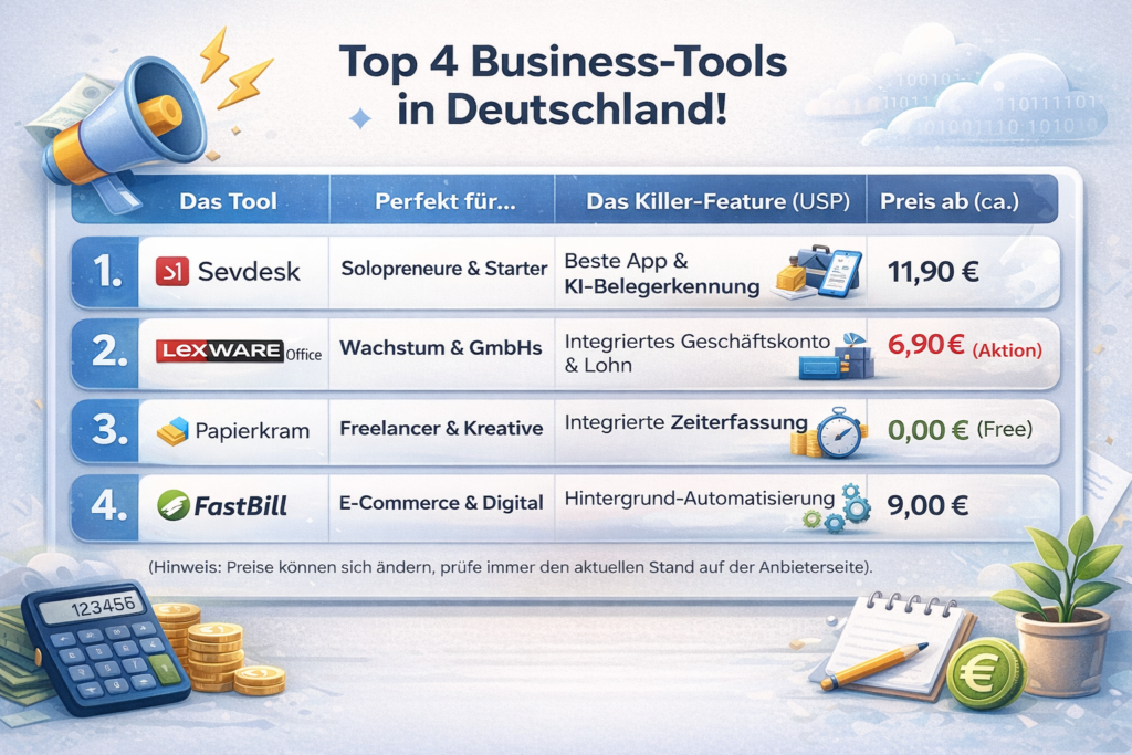 Es gibt hunderte Tools da draußen. Sevdesk, Lexware, Papierkram oder FastBill? Alle versprechen, dass sich die Buchhaltung „wie von selbst“ erledigt. Aber welches Programm passt wirklich zu deinem Business-Modell?