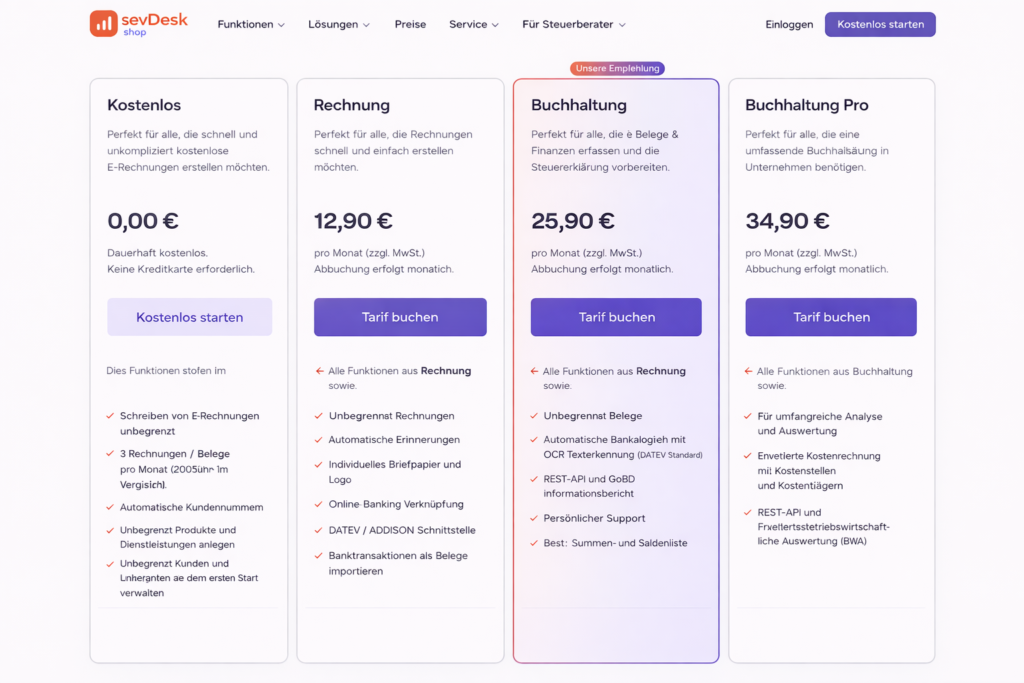 2. Tarif „Buchhaltung“ (ca. 25,90 € / Monat) – Der Standard