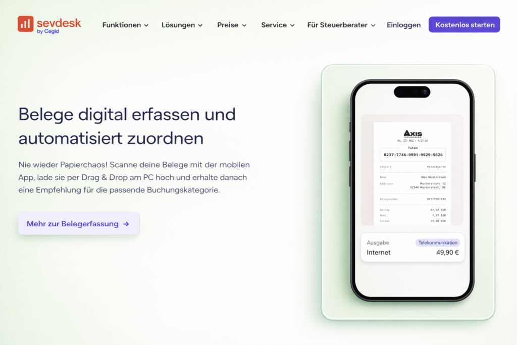 Es ersetzt deinen Steuerberater nicht zwingend, aber es arbeitet ihm so perfekt zu (via DATEV-Schnittstelle), dass du Zeit sparst und deine Beraterkosten senkst, weil du keine unsortierten Belege mehr abgibst.